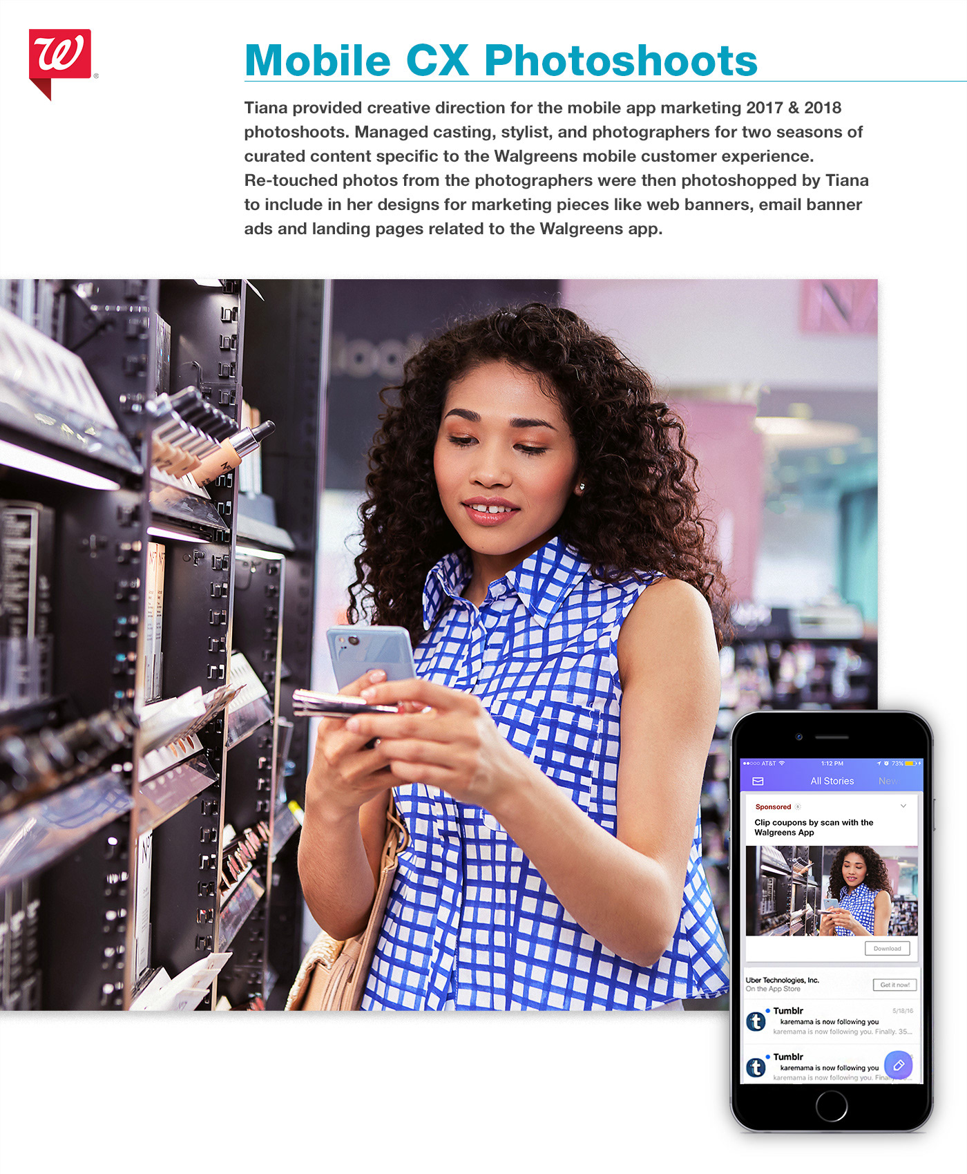 Photoshoots curated by the Mobile CX Visual Designers for the Walgreens Mobile app.